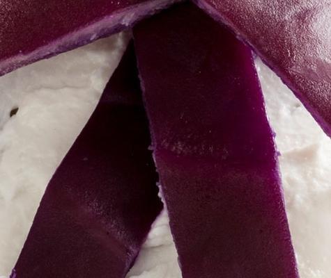 Beat the whipped cream with the mixer stiff and crumble the goat's cheese.